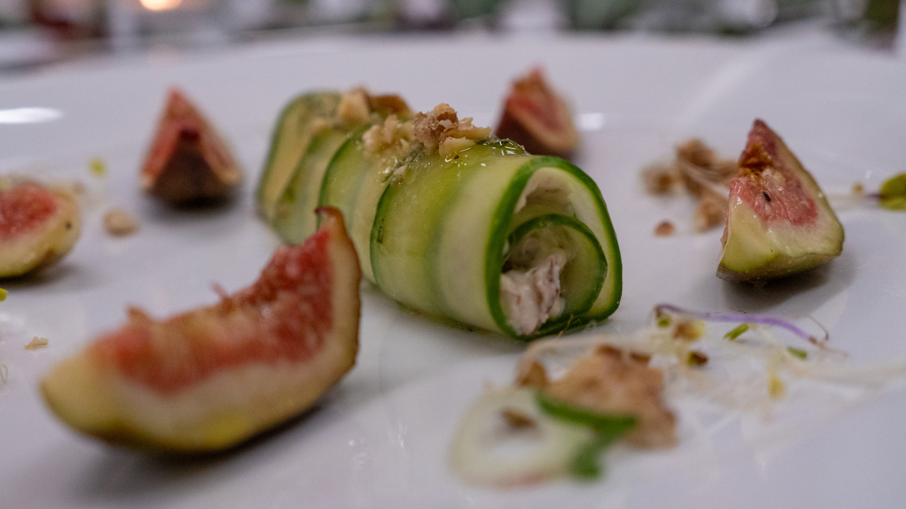 In diesem Jahr hatten die Studierenden wieder ein besonderes Konzept vorbereitet: Es wurden zwei unterschiedliche Fünf-Gänge-Menüs entwickelt, die jeweils einem Tisch zugewiesen wurden. Dadurch erhielt jeder Tisch sein ganz eigenes Menü, was dem Abend eine zusätzliche kulinarische Vielfalt verlieh und den Studierenden ermöglichte, ein breiteres Spektrum ihrer Fähigkeiten zu präsentieren. Die Gäste zeigten sich begeistert von dieser Idee, die den Austausch über die unterschiedlichen Speisen quer durch den Raum zusätzlich belebte.