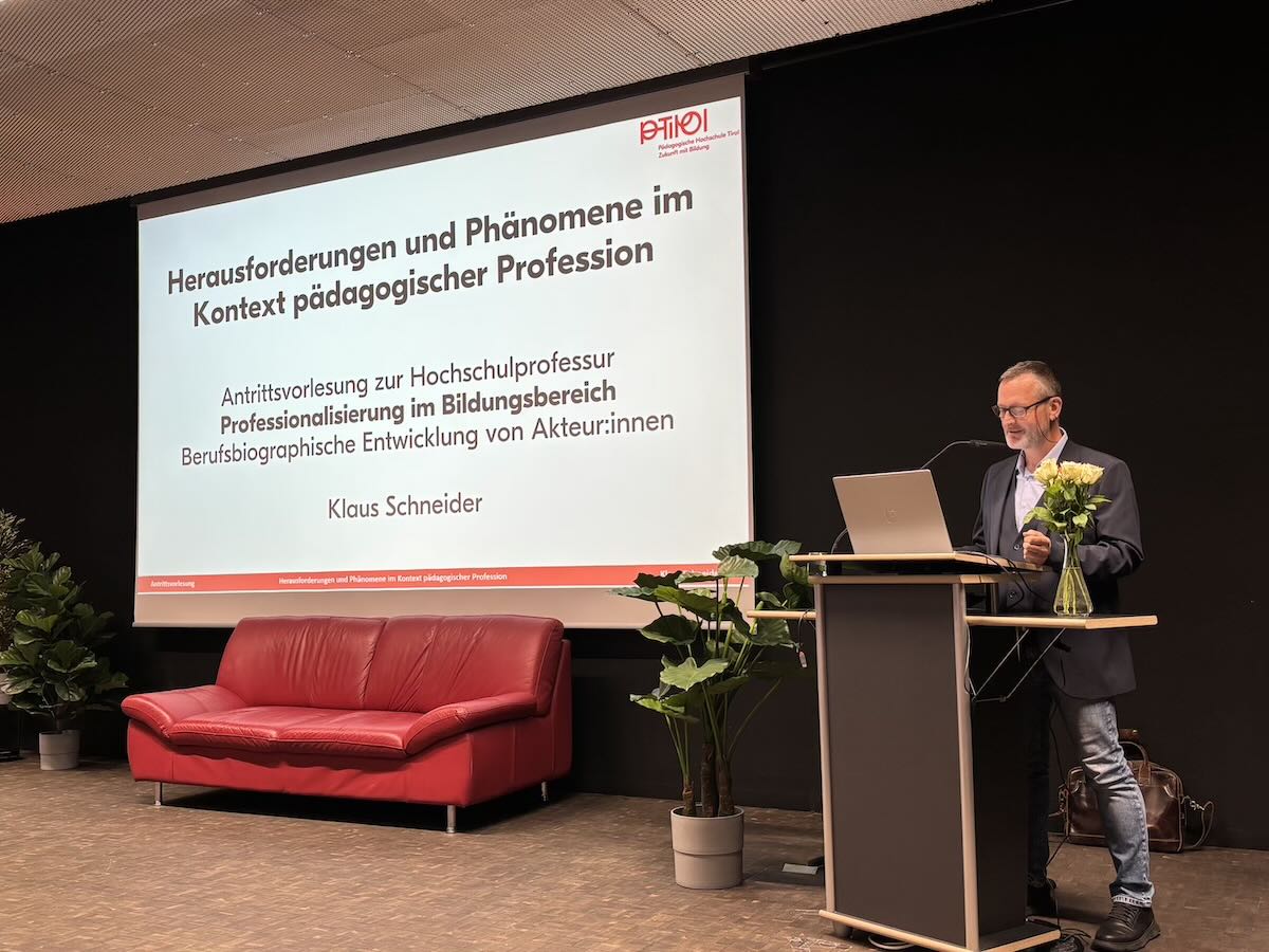 In feierlichem Rahmen fanden Anfang Mai die Antrittsvorlesungen von HS-Prof. Mag. Klaus Schneider, PhD und HS-Prof. Mag. Thomas Stornig, BEd PhD im großen Hörsaal der Pädagogischen Hochschule Tirol statt.