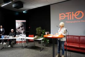 Nach der Eröffnung des Abends durch Barbara Fritz, Präsidentin des ZONTA Clubs, und PH Tirol-Rektorin Regine Mathies stellten die Geschäftsführerin des Vereins „Frauen gegen VerGEWALTigung“ Doris Stauder und Mitarbeiterin Katharina Hölbling die Arbeit ihres Vereins vor, darunter Sensibilisierung, Opferschutz und Prozessbegleitung. Der Verein geht an Schulen, klärt auf, berät Frauen* und Mädchen* ab 14 Jahren, die sexualisierte Gewalt erlebt haben, sowie deren Bezugspersonen und Multiplikator:innen. Das Beratungsspektrum erstreckt sich von psychosozialer und rechtlicher Beratung bis hin zu Krisenintervention und Prozessbegleitung. Auch Präventionsarbeit an Schulen, in Jugendzentren, Selbstbehauptungskurse und Fortbildungsangebote zum Thema leistet und organisiert der Verein „Frauen gegen VerGEWALTigung“.