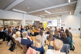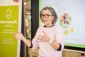 Christine Gelbmann von der AGES - Kompetenzstelle Gemeinschaftsverpflegung sprach in ihrem Workshop zu "Jause & Schulbuffet: Gut versorgt am Wohlfühlort". Egal ob die Jause von zu Hause mitgebracht, auf dem Weg besorgt oder beim Schulbuffet gekauft wird, sie soll Kindern und Jugendlichen die nötige Energie liefern, um konzentriert den Schulalltag zu meistern. Gleichzeitig geht es bei der Pausenverpflegung um weit mehr. Im Fokus des Workshops standen daher sämtliche Erfolgsfaktoren, die zum Gelingen einer gesunden und wohltuenden Pause beitragen.