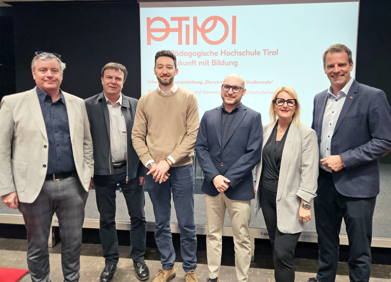 Vizerektor Gregor Örley und Institutsleiterin Karoline Graswander-Hainz begrüßten die Anwesenden herzlich. Florian Hupfauf und Hannes Schacher als Vertreter der Bildungsdirektion informierten gemeinsam mit Peter Spanblöchl und Gerhard Schatz von der Gewerkschaft Öffentlicher Dienst über Anstellungsperspektiven für Studierende. Karoline Graswander-Hainz erläuterte zudem die Möglichkeiten eines berufsbegleitenden Studiums.