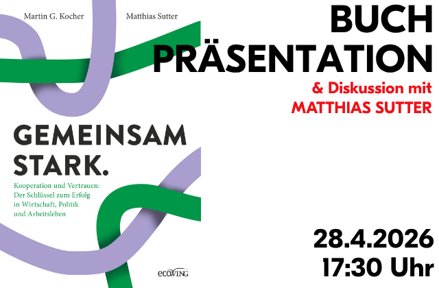 Matthias Sutter spricht über das aktuelle Buch ‚Gemeinsam stark‘ von Martin G. Kocher und ihm, in dem anhand wissenschaftlicher Forschung aus der Verhaltensökonomik und praxisnaher Beispiele gezeigt wird, warum Vertrauen und Kooperation Schlüssel zu einer erfolgreichen Zukunft sind. Dabei behandelt das Buch unter anderem die Entwicklung von Kooperation und Vertrauen im Kindes- und Jugendalter und beleuchtet, wie der Vertrauensvorschuss zu Beginn der Arbeit belohnt wird, wenn alle Beteiligten das Ergebnis als Gruppenerfolg sehen.