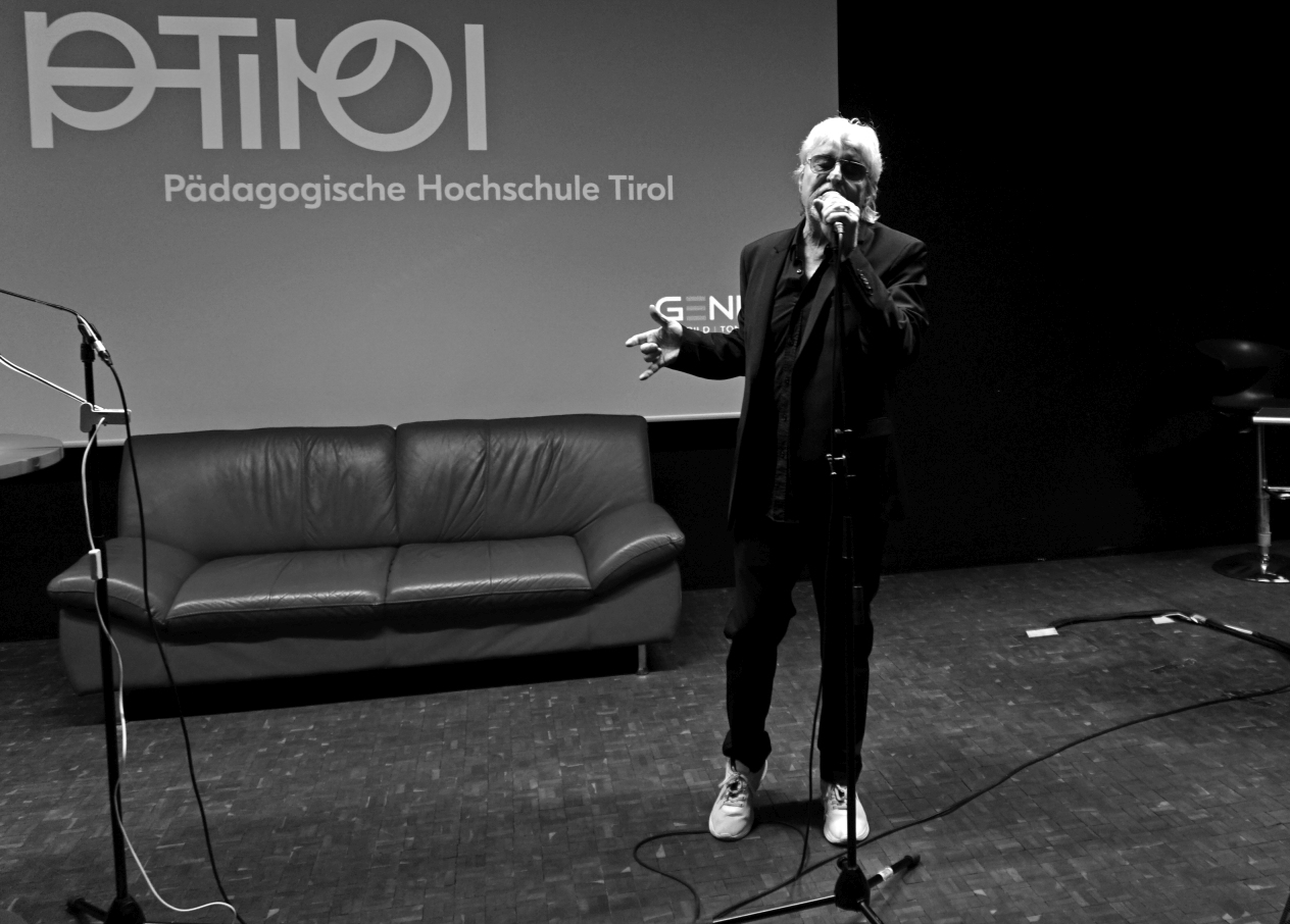 Freitagabend, 4.4.2025, 19 Uhr, stellte „Rockprofessor“ Reinhold Bilgeri auf Einladung des ZONTA Clubs Innsbruck 1 seinen neuen Roman „Das Gewissen der Tauben“ vor. In einer atmosphärischen Lesung mit Jazzeinlagen vermittelte der facettenreiche Künstler stimmungsvoll den Spirit seines Werks. Thematisch schwerwiegend, geht es um das Schweigen der Nachkriegsjahre in Österreich, um die Rolle des Vatikans bei der Fluchthilfe für Täter des NS-Regimes. Getragen von einer Amour fou, einer Liebesgeschichte, durchwirken Tiefe und zugleich auch Verwegenheit, Leichtigkeit und Hoffnung den Roman. Die Veranstaltung fand an der Pädagogischen Hochschule Tirol vor vollem Haus statt. Der Erlös des Abends ging an den Verein „Frauen gegen VerGEWALTigung“.