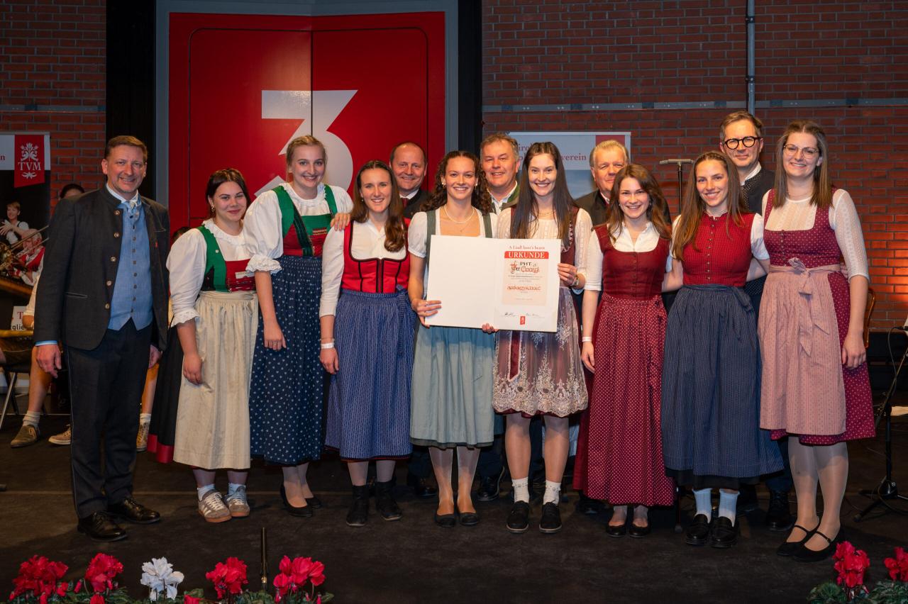 Die siebenköpfige Gesangsgruppe wurde schließlich mit dem begehrten Prädikat „Auszeichnung“ geehrt und zudem zur Mitwirkung beim abschließenden Festabend im ORF-Landesstudio Tirol eingeladen. Zahlreiche Ehrengäste – darunter LH-Stellvertreter Josef Geisler, FI Martin Waldauf u. a. – zeigten sich äußerst angetan von der hohen Leistungsfähigkeit der mitwirkenden Gruppen.